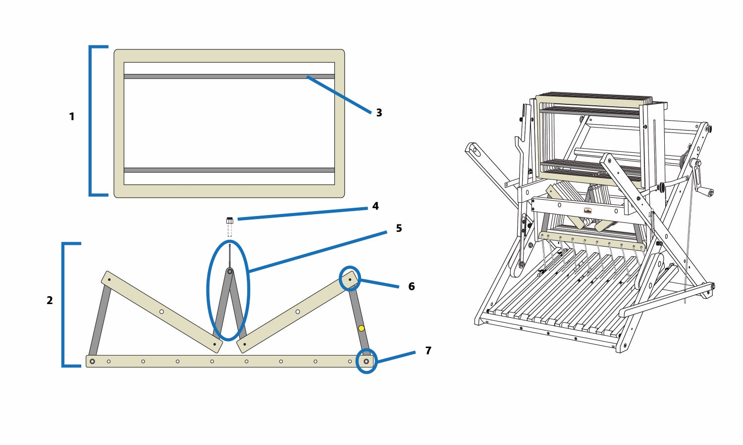 harness jack and lamm kitsĀ (Select appropriate version of 4 variants for the 8.10 loom) heddle bar nuts and O-rings pack jack riser kit jack pin lamm pin Also available: harness shim