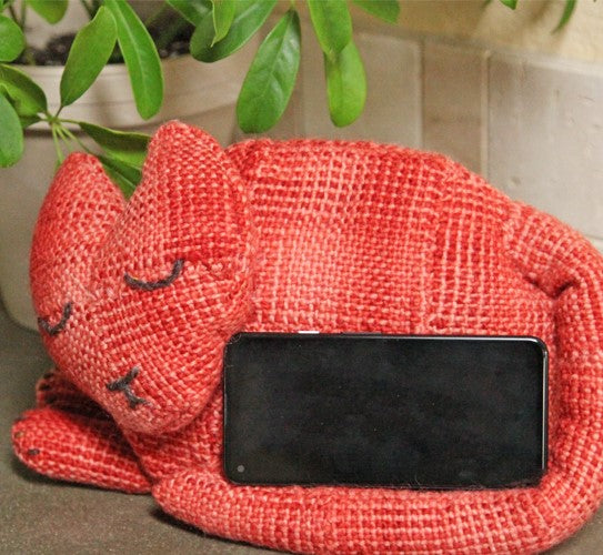 For some time now, I have wanted to create the perfect phone pillow—one that didn't look like a weird pyramid but still did the job of comfortably propping up a phone. Since I am in love with all things Zoom Loom, I knew that I would be making it with 4" squares. My Cat Phone Pillow became a great opportunity to build a three-dimensional soft structure with pin loom squares.