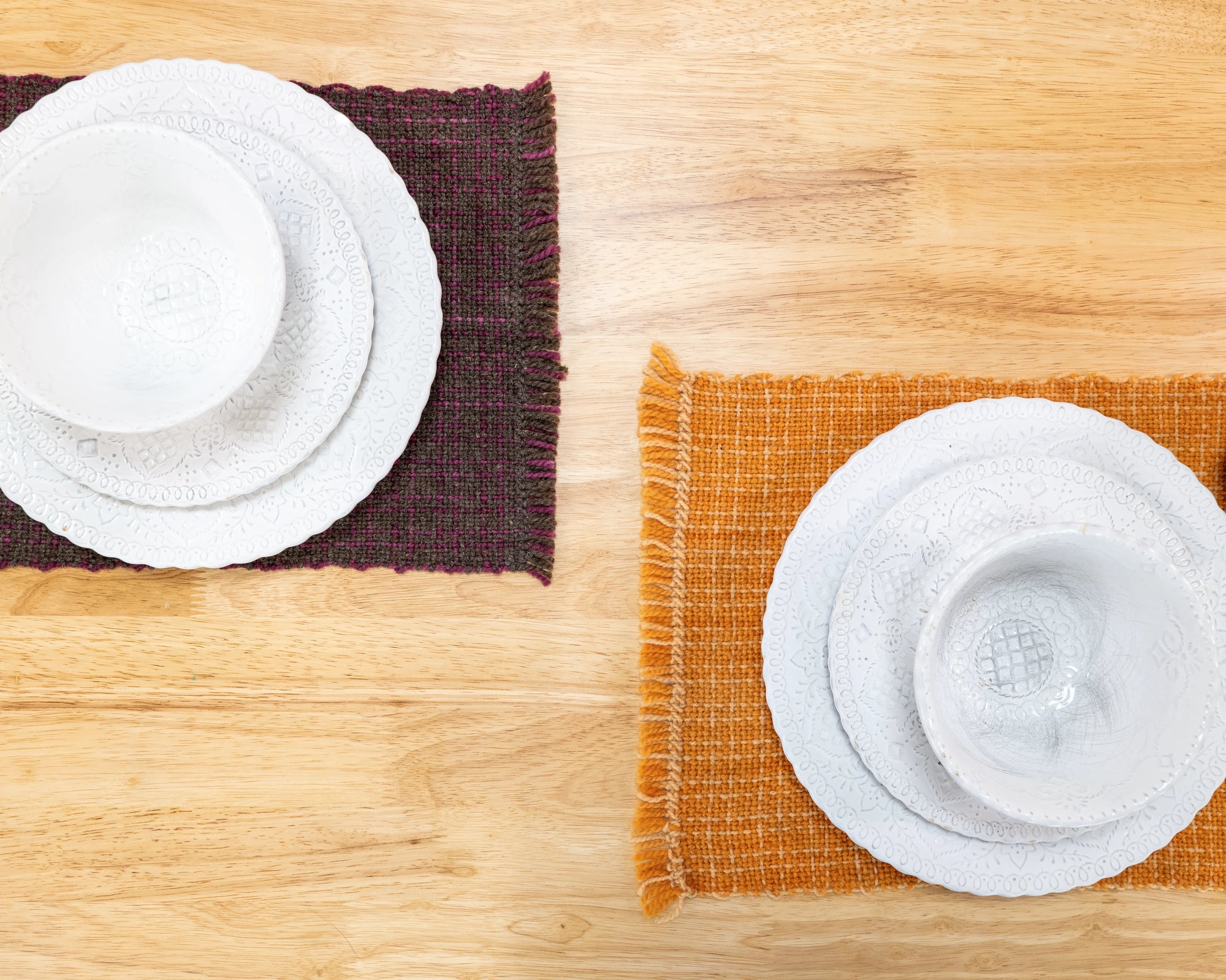 - Soak the placemats in warm water. Remove the excess water from the cloth and allow to air dry. Trim the fringe to your desired length (I cut to 1"). - Enjoy your placemats as you gather for a meal.