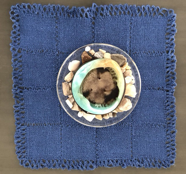 Blue bread cloth: Fibra Natura Java, 1 skein 107 Riviera Blue for squares (about 148 yards) and edging
