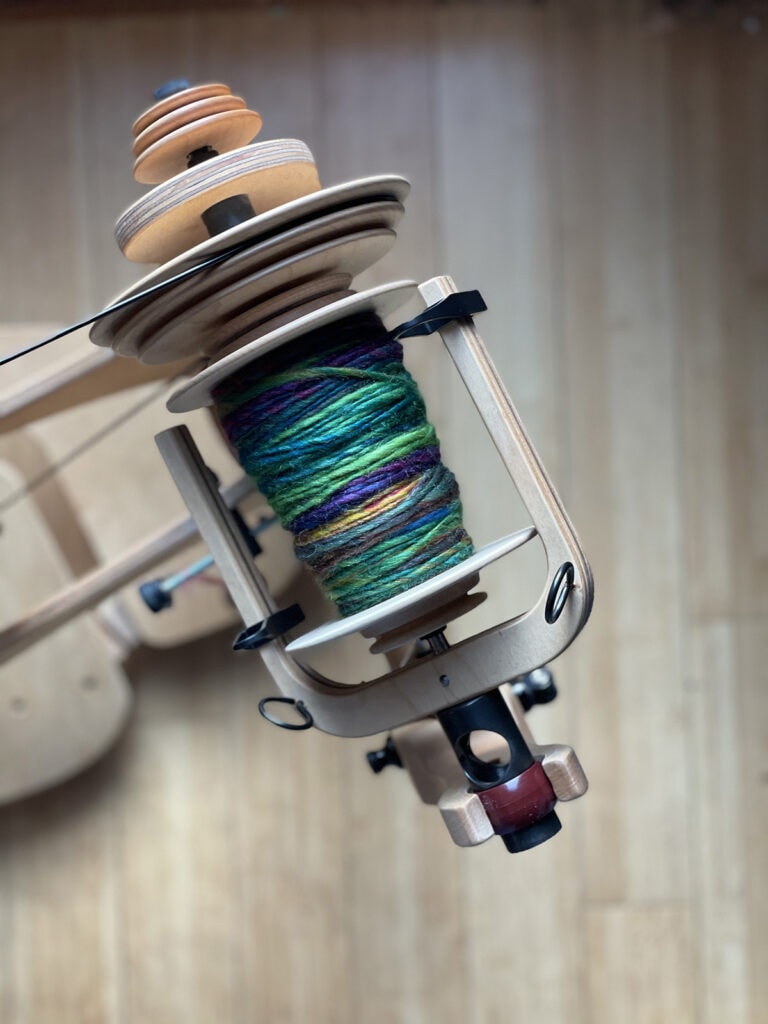 At first, bulky yarns are slower yarns to spin. It takes less time to spin 4 ounces of fiber, but more time to create each inch of yarn until you get the hang of it. Be kind to yourself and give yourself the gift of slowing down until you get the rhythm and feeling of spinning bulky.