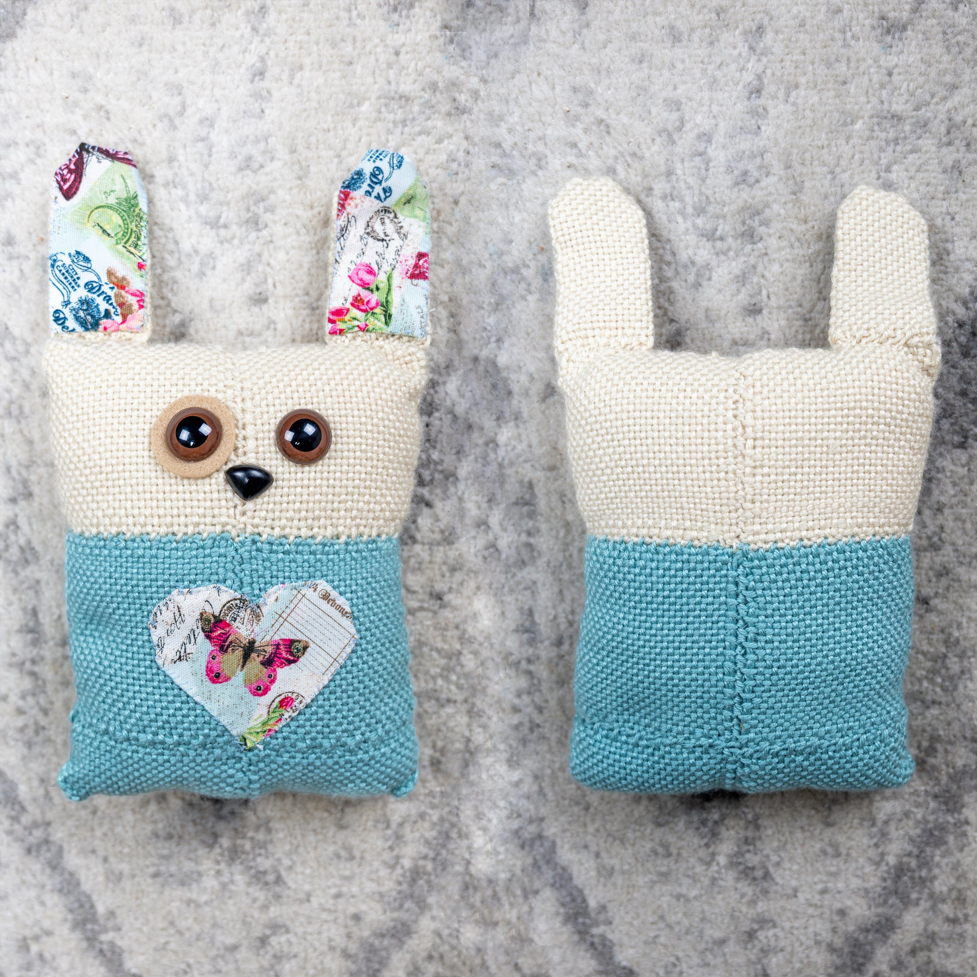 Finished size: body measures about 10" x 8" when assembled and stuffed, excluding ears and limbs