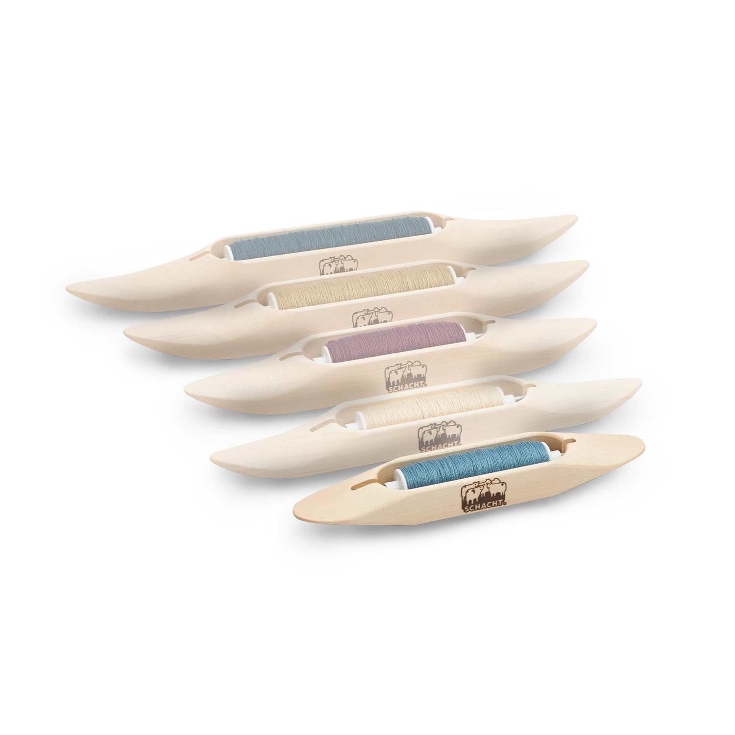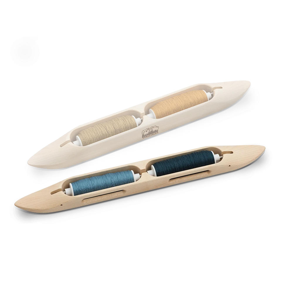 - Because the pattern/float yarn is bulky, I used a stick shuttle the width of my weaving. I used a 13” boat shuttle for the Navajo rug warp.