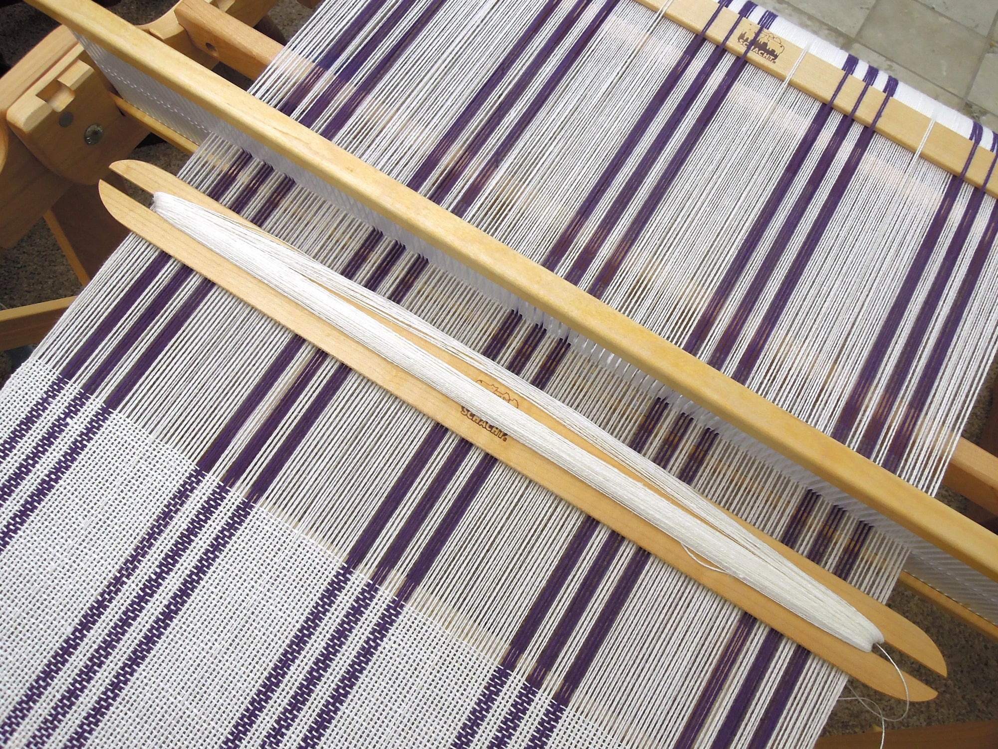 - Note that 18/3 Linen in Lavender is used doubled in the weft for this towel only. You can either pass the shuttle through the shed twice, catching the selvedge edge thread (this is what I did), or wind the shuttle with doubled yarn.