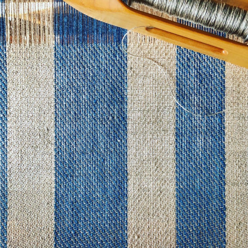 Here is my stripe pattern—280 threads alternating between natural linen and indigo dyed linen: 20 linen-40 indigo-40 linen-60 indigo-40 linen-40 indigo-20 linen-20 indigo