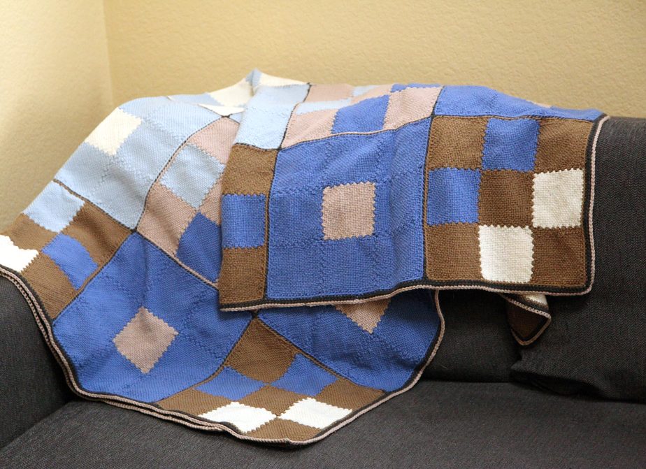 - Whipstitch the 25 blocks together with Grey. It's easiest to work strips of 5 blocks, then join the 5 strips. Weave in all tails.