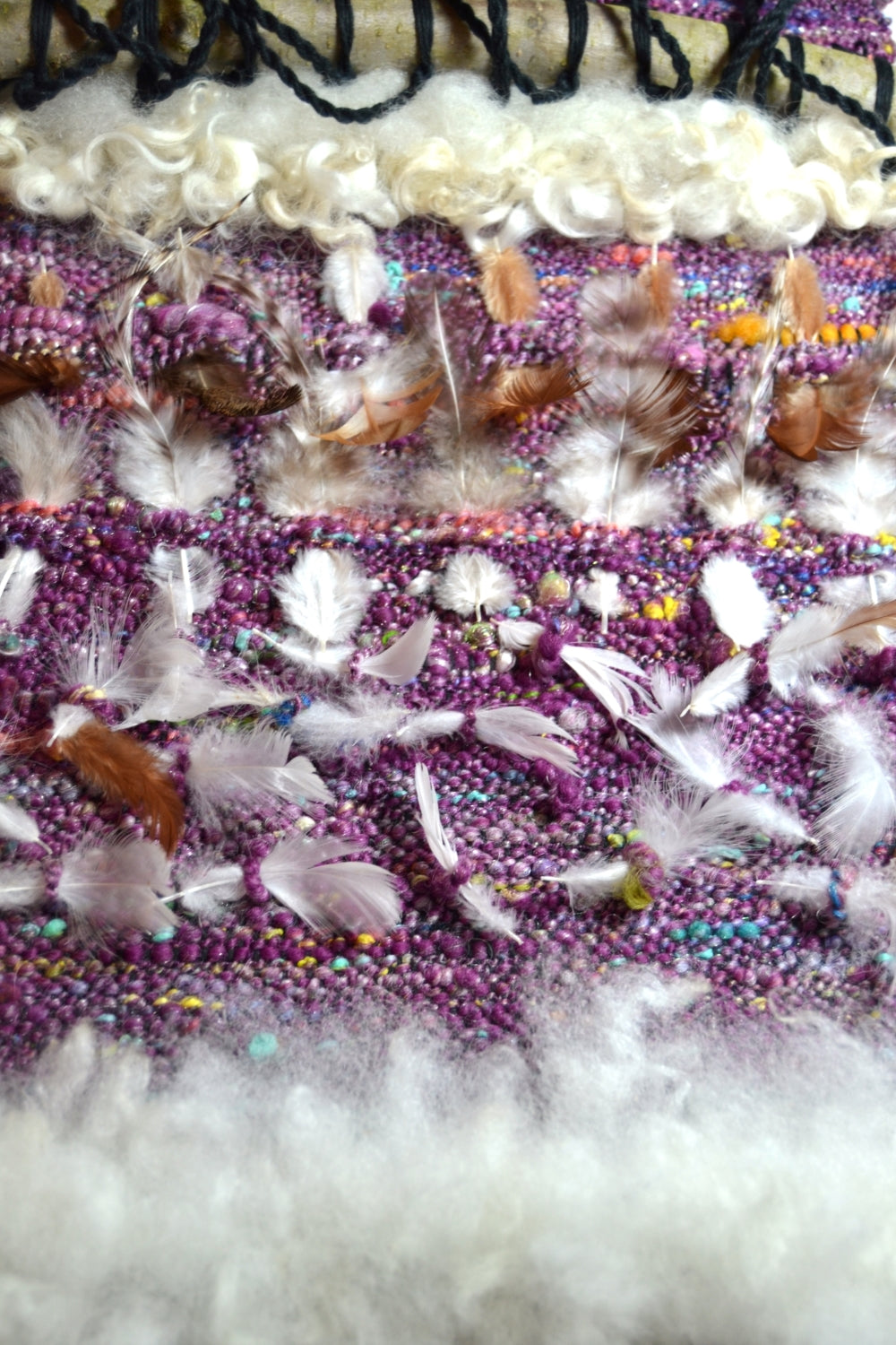 - Replenish feathers and locks as needed. To customize your weaving, add grasses or small twigs that are native to your area in the loops or the float sections.
