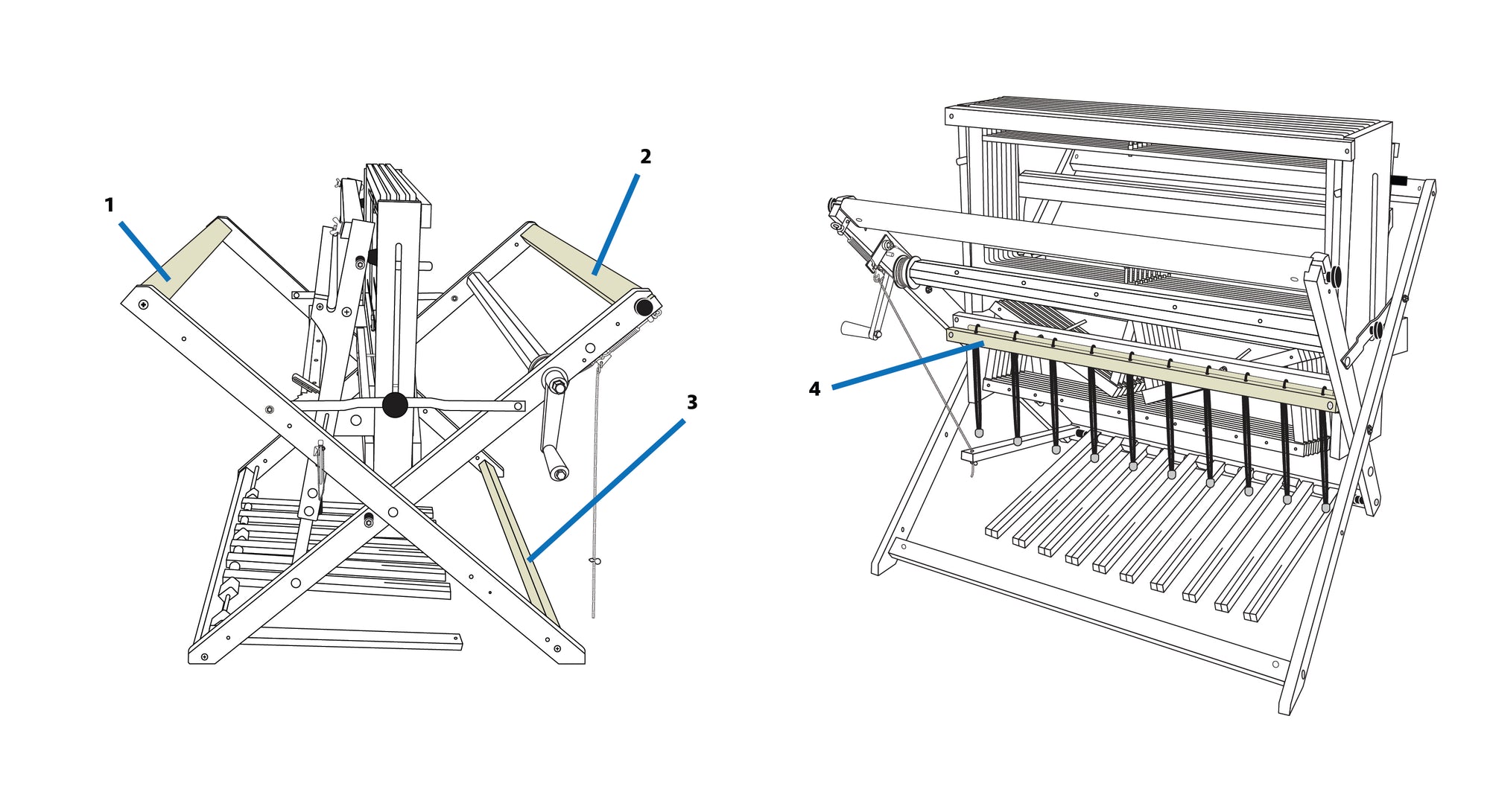 Note: Height Extender looms use Height Extender treadles and a Height Extender Brake Release Pedal. 4 Now-4 Later looms ship with 10 treadles installed.