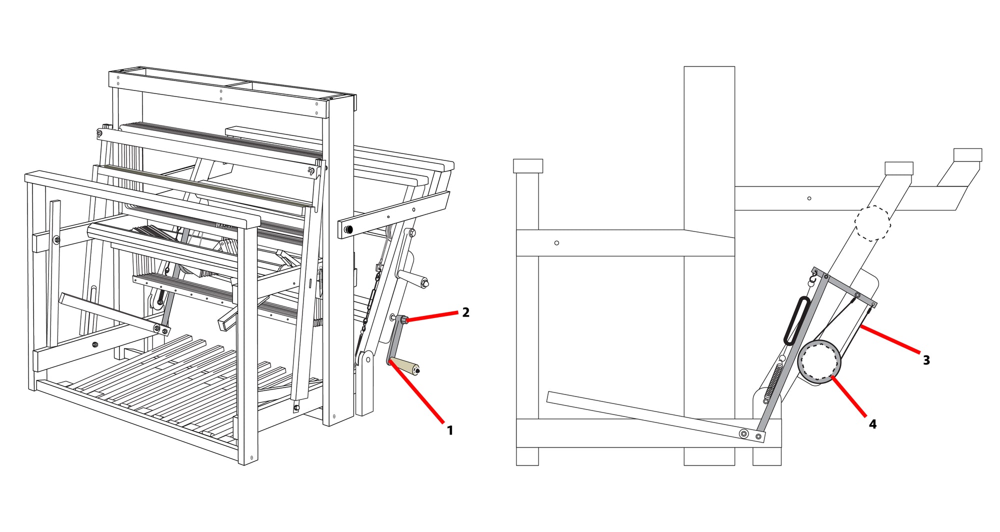 - maple or cherry complete warp beam crank handle (includes tapered handle), maple or cherry tapered handle kit for all Standard Floor Looms and double back beams
