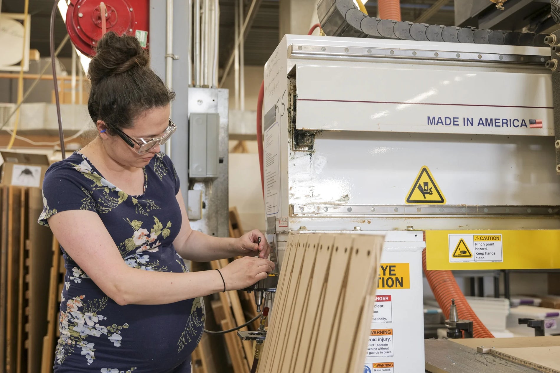 Inside is abuzz with activity, from high tech computer-controlled CNC machinery, to the low tech of hand-sanding a shuttle to a smooth finish. Making just one of our beautiful boat shuttles requires seven steps.