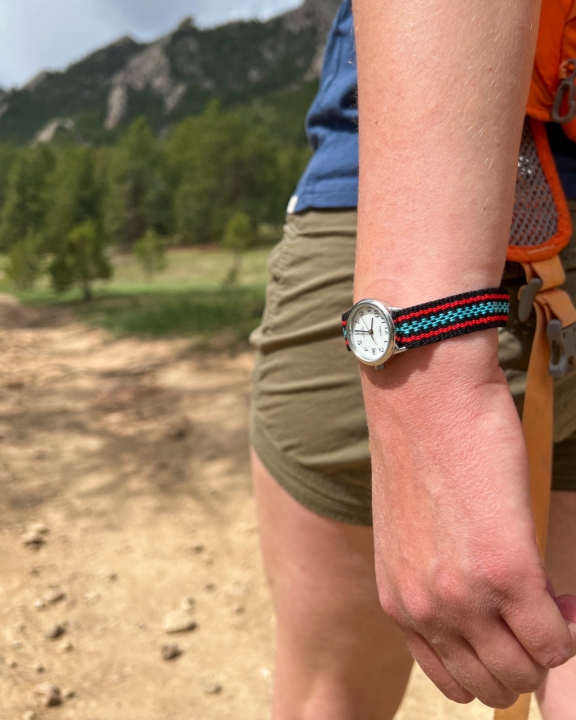 Right: Woven Bracelet with Many Uses by Annie MacHale, inkle loom